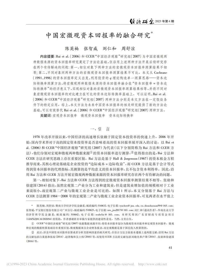Bai et al.(2006)和CCER“中国经济观察”研究组(2007)为中国宏微观两种数据来源的资本回报率研究奠定了方法论基础,但沿用上述两种方法开展后续研究存在两个有待解决的问题:第一,相似对象下两种方法的宏微观资本回报率测算结果不相等;第二,不同对象间两种方法的宏微观资本回报率测算结果不可比。本文从Cochrane(1991,1996)的资本回报率定义出发,利用投资的q理论构造单一测算思路——资本边际转换率测算方法,将宏微观两种数据来源的资本回报率融合在“资本回报率=资本边际转换率”的经济意义下,实现相似对象的宏微观资本回报率测算结果相等,并将不同对象宏微观资本回报率的对比建立在可比的资本边际转换率基础上。可以证明,Bai et al.(2006)和CCER“中国经济观察”研究组(2007)两种方法分别是本文方法在一定假设条件下的特定应用。综上,本文方法为未来中国资本回报率的相关研究提供了新的方法论基础,可以有效替代Bai et al.(2006)和CCER“中国经济观察”研究组(2007)两种方法。