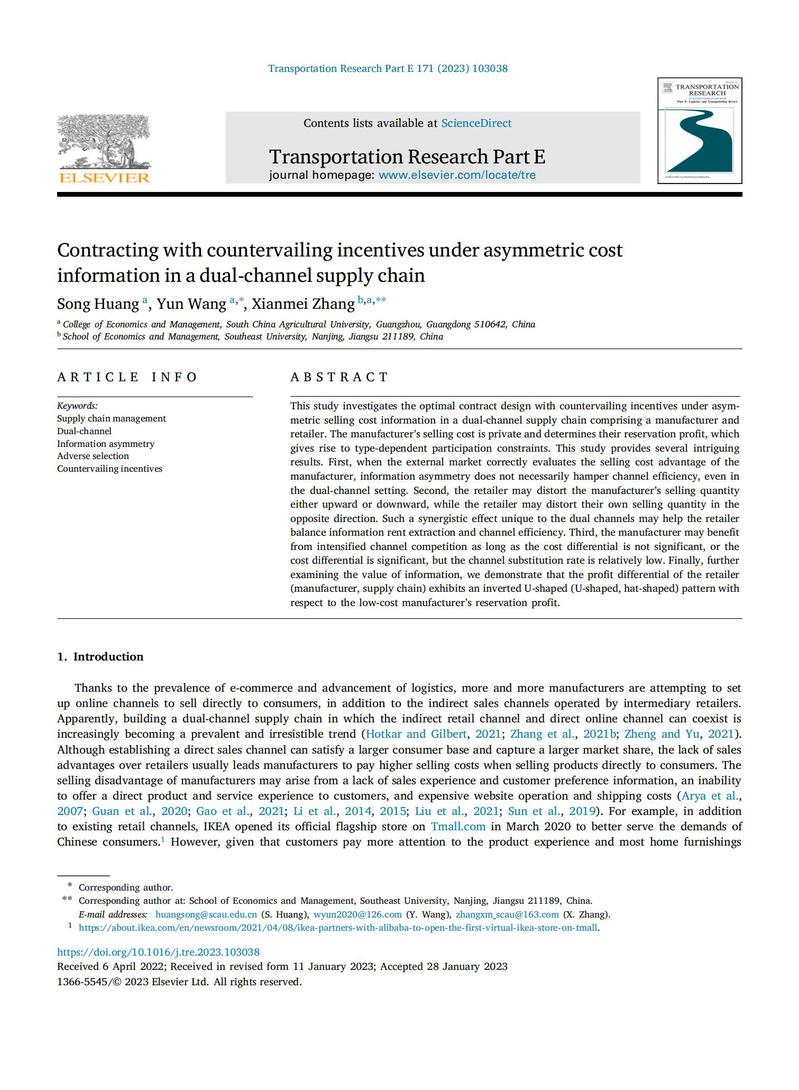 题 目:Contracting with countervailing incentives under asymmetric cost information in a dual-channel supply chain