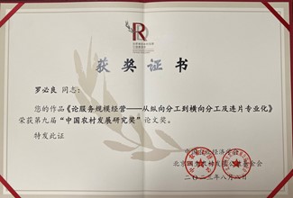 这一年,学院有3项成果分获中国农村发展研究论文奖和提名奖。