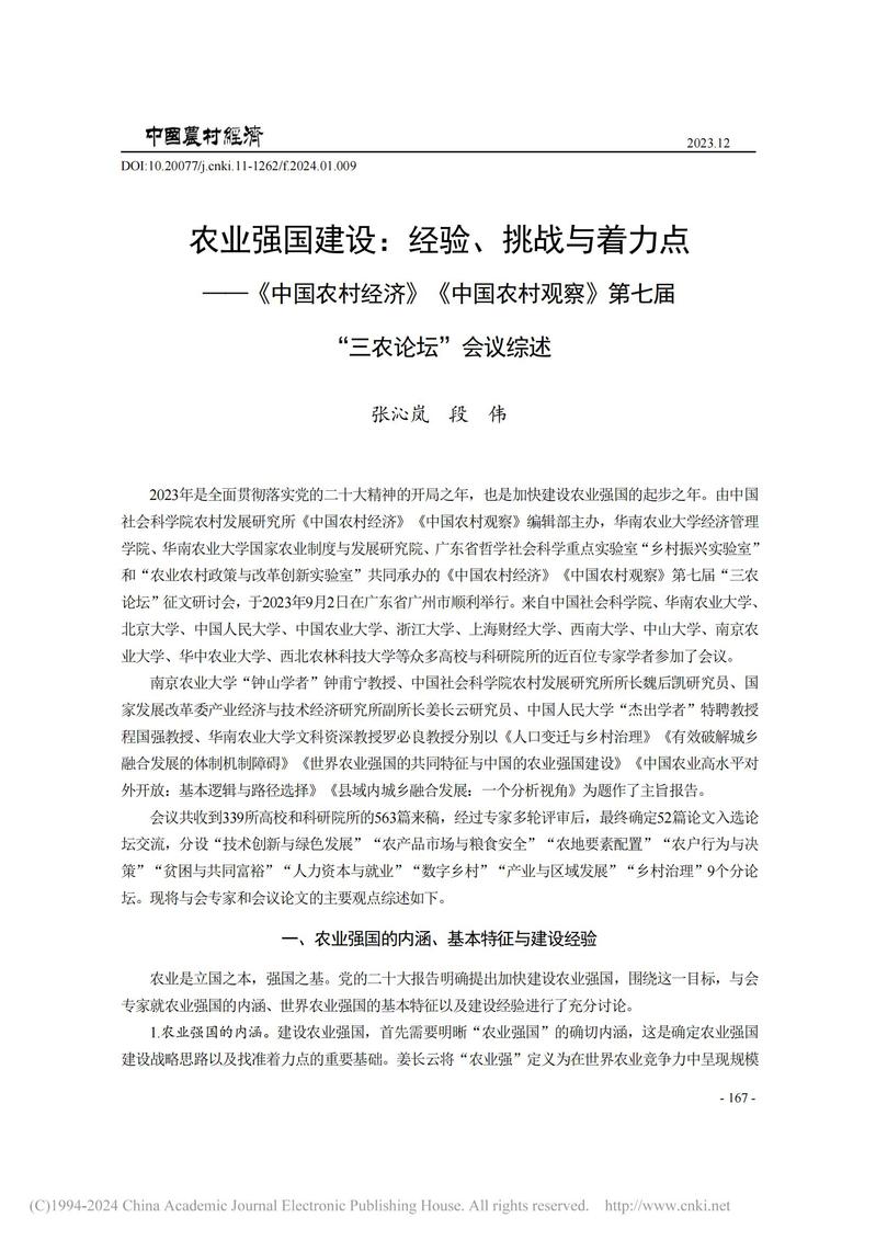 《中国农村经济》张沁岚、段伟:农业强国建设:经验、挑战与着力点 ——《中国农村经济》《中国农村观察》第七届 “三农论坛”会议综述