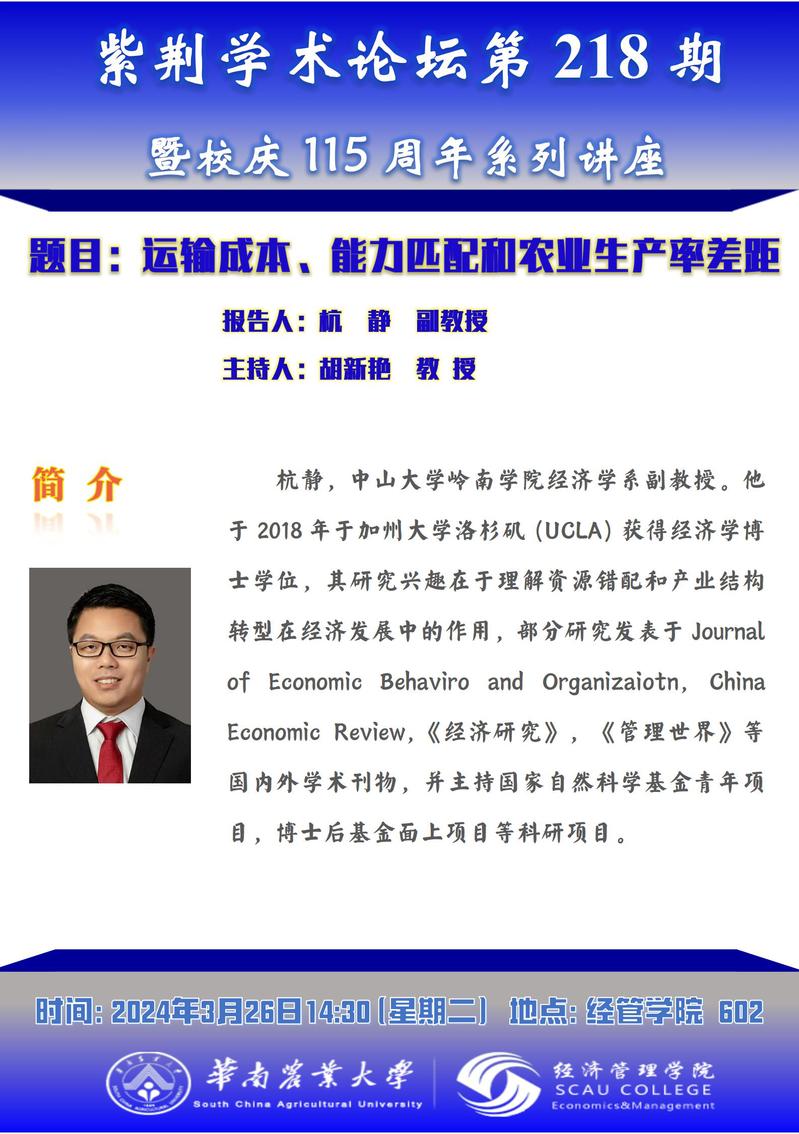 115周年校庆“学术华农”系列活动(自编04期)暨紫荆学术论坛第218期