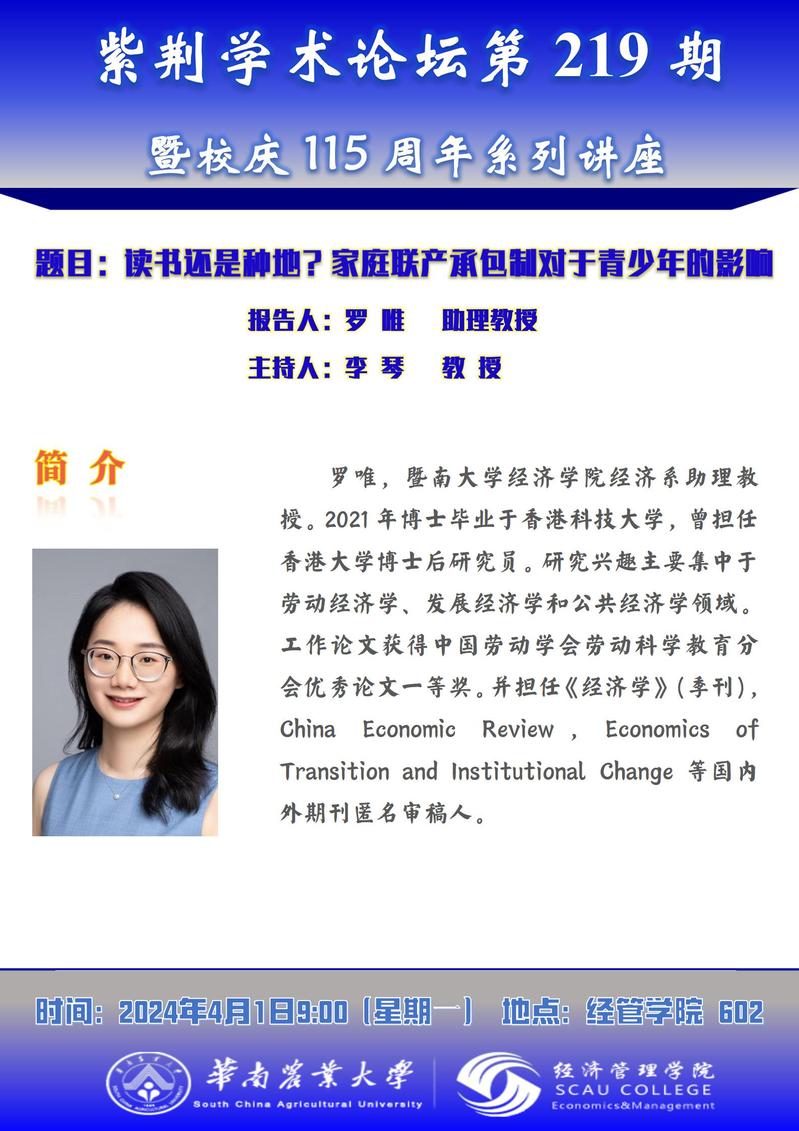 115周年校庆“学术华农”系列活动(自编05期)暨紫荆学术论坛第219期