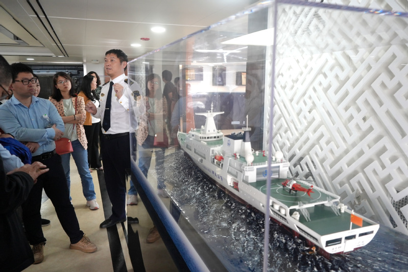 据介绍,海巡09总长165米,型宽20.6米型深9.5米,是我国首艘万吨级海事巡逻船,也是我国目前吨位最大、装备先进、综合能力强,具有世界领先水平的公务执法船该船集海事巡航和救助于一体,具备高海况下的跨海区安全巡航及应急搜救能力,可实现海空一体综合执法和全球巡航救援,是我国海上重要的巡航执法、应急协调指挥、海上防污染指挥动态执法平台