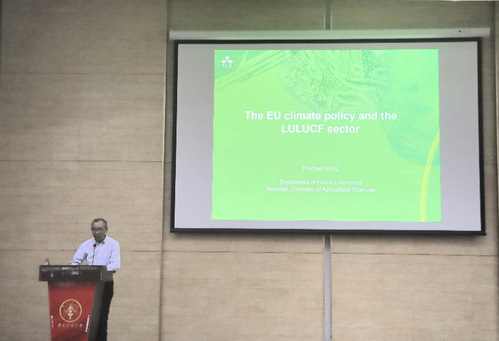首先,公培臣教授为同学们介绍了欧盟的碳减排目标及其演变历程,主要从欧盟碳排放权交易市场、欧盟《责任分担条例》(The Effort Sharing Regulation)与土地利用部门的政策工具三个方面分析了欧盟的碳减排政策。接着,公培臣教授以瑞典为例,介绍了瑞典为达成碳中和目标,在农业与林业等土地利用部门减少碳排放与增加碳汇的主要政策与做法。