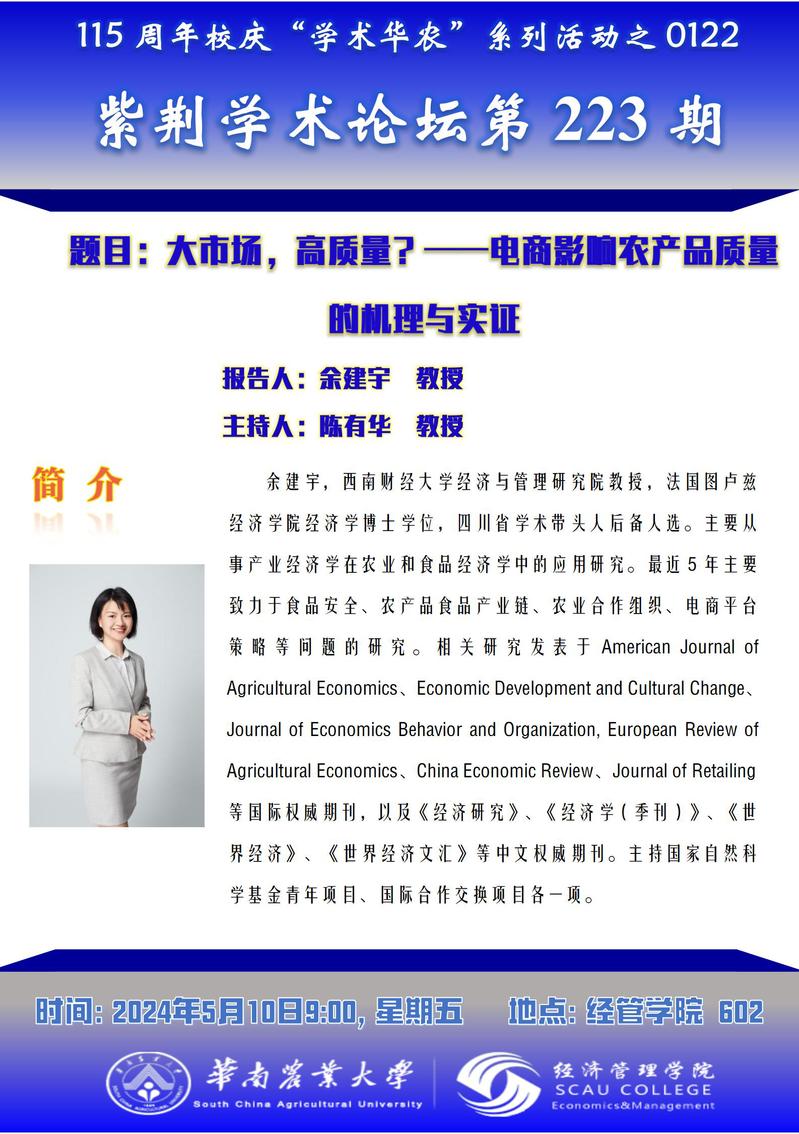 115周年校庆“学术华农”系列活动之0122 暨紫荆学术论坛第223期