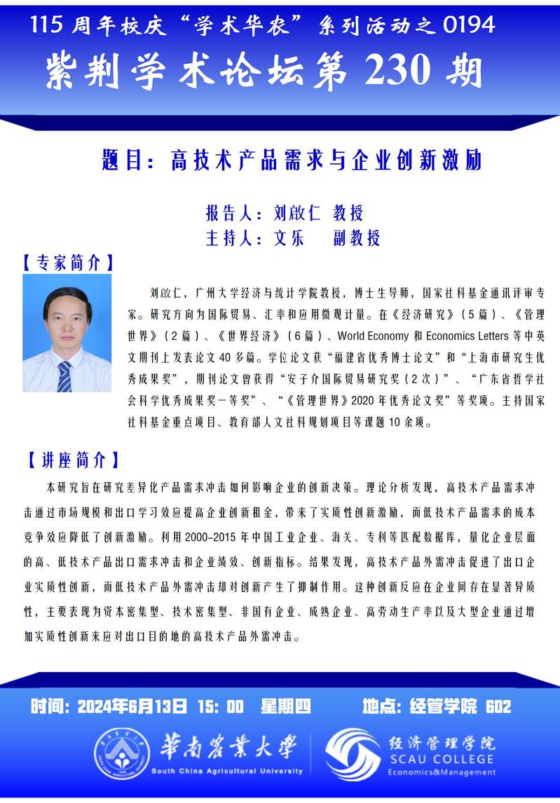 115周年校庆“学术华农”系列活动之0194:紫荆学术论坛第230期