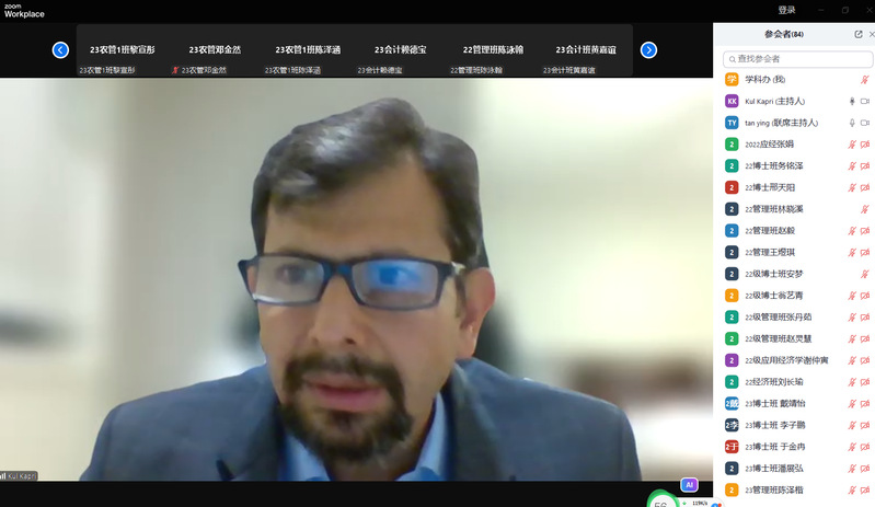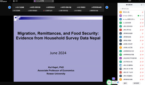 2024年6月18日,115周年校庆“学术华农”系列活动之0212暨紫荆学术论坛第232期学术报告在线上举行。罗文大学经济学系KulPrasad Kapri副教授应邀为我院师生呈现主题为“Migration, Remittances, and Food Security:Evidence from Household Survey Data Nepal”的精彩讲座。本次讲座采用Zoom会议形式在线进行,由我院谭莹教授主持,学院在校教师、博士研究生和硕士研究生等100余人参会。
