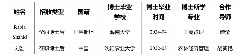 根据学校博士后工作管理办法有关规定,经个人申请、合作导师推荐、学院人才学术评议工作小组评议、学院党委把关思想政治和师德师风、学院党政联席会议审议等工作程序,我院拟招收刘浩为在职博士后研究人员,拟招收RABIA SHAHID为全日制博士后研究人员,现予以公示。