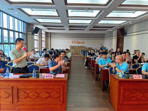 参观结束后,正典生物创始人兼总经理谭志坚先生发表了题为《兽药企业突破行业内卷的策略与路径》的主题演讲。他深入分析了兽药行业的内卷现状,并提出了企业在创新研发、特色产品、市场拓展等方面的应对策略。谭志坚总经理指出,面对高成本和市场竞争的挑战,兽药企业必须加强研发投入,推出针对特定疾病和特定养殖环境的专用兽药产品,以满足市场对高质量产品的需求。