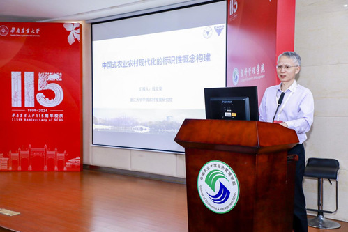 大会由广东省哲学社会科学重点实验室“乡村振兴实验室”执行主任、yl6809永利官网院长罗明忠主持。开幕式上,yl6809永利官网党委副书记丁红星致辞。他介绍了yl6809永利官网的历史沿革、办学特色与发展成绩,向莅临的专家学者表示热烈欢迎,并预祝本次会议取得圆满成功。上午的大会报告上,浙江大学中国农村发展研究院院长钱文荣教授以“中国式农业农村现代化的标识性概念体系构建”为题,结合哲学的方法论,界定了标识性概念和分类,通过立足本土,运用扎根理论对中国式农业农村现代化标志性概念进行提炼,探索从改革开放以来的中央一号文件中提取出相关理论的政策性概念。同时希望与各位专家共同讨论,进一步构建和完善规范性概念和标识性概念。