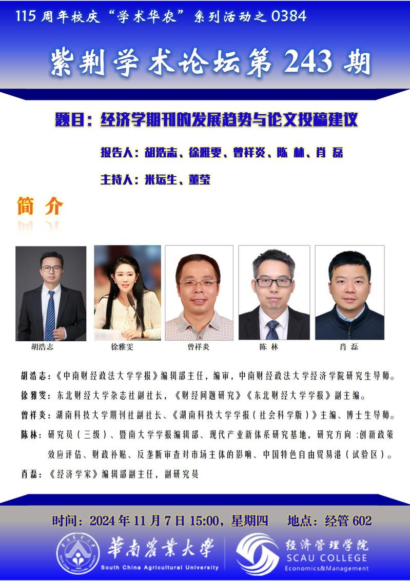 115周年校庆“学术华农”系列活动之0384:紫荆学术论坛第243期