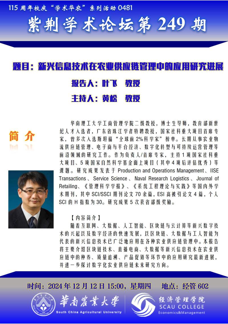 115周年校庆“学术华农”系列活动之0481:紫荆学术论坛第249期