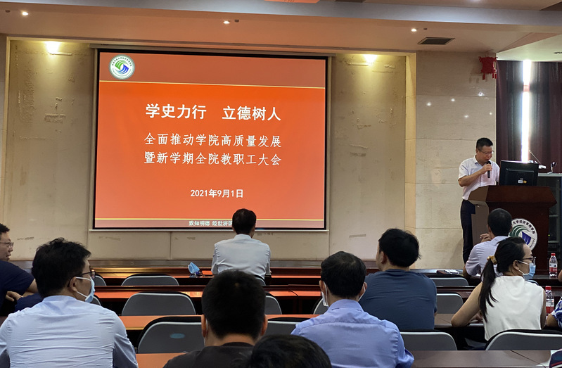 9月1日下午,我院召开新学期工作会议,全院教职工出席。会议以“学史力行 立德树人”为主题,主要任务是总...