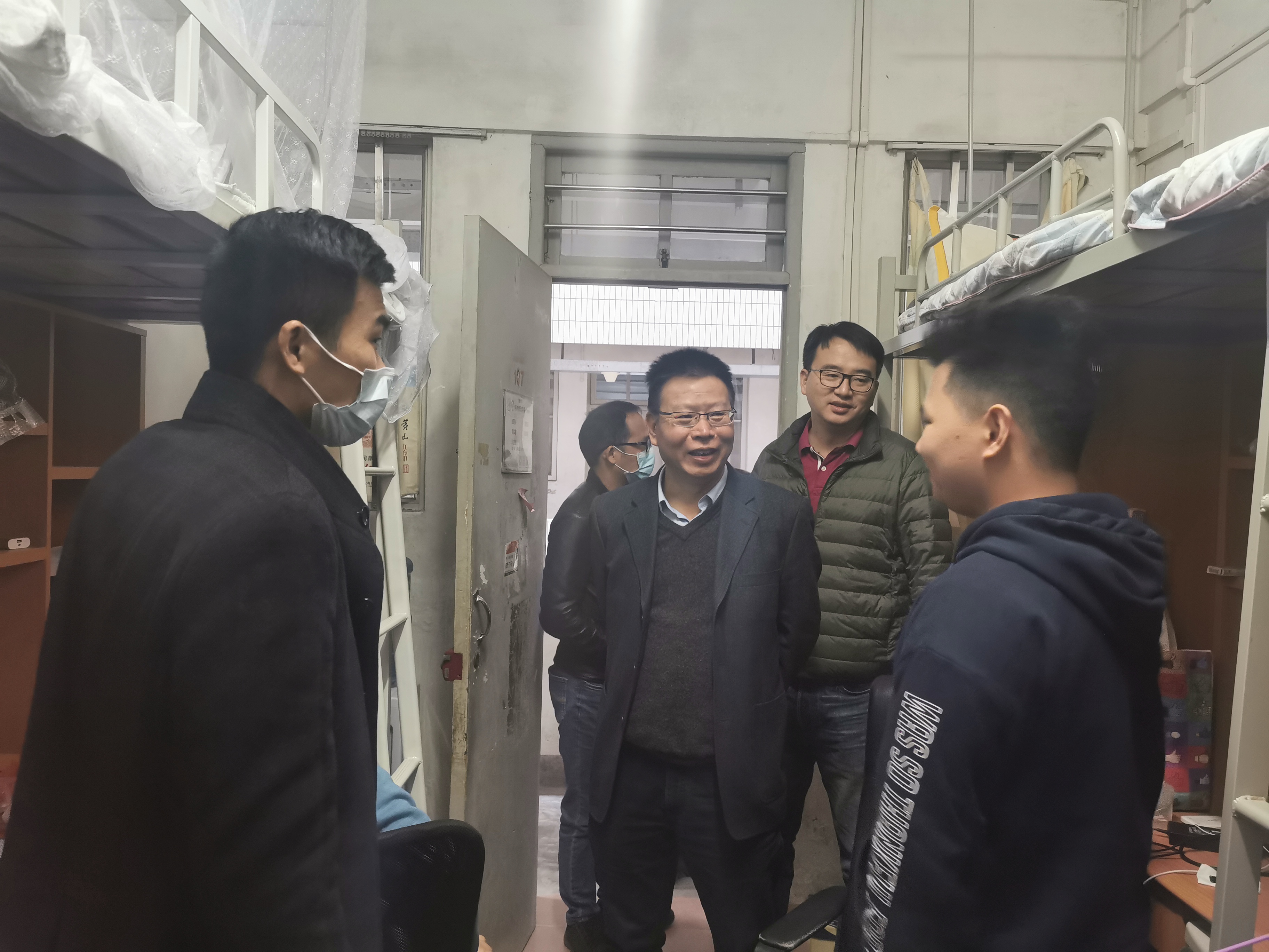 12月31日下午,我院党委书记蔡传钦带领全体辅导员深入学生社区和宿舍开展安全隐患排查工作。蔡书记与留校学...