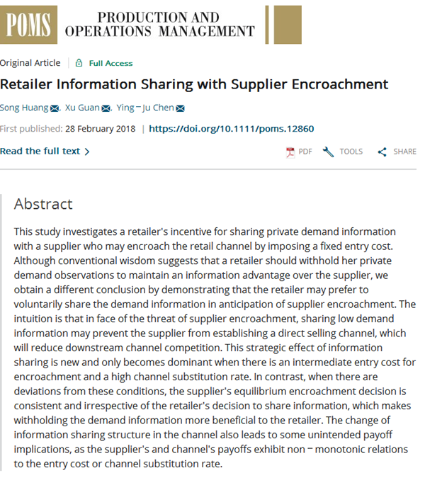 我校青年教授黄松以第一作者在国际顶级期刊Producti