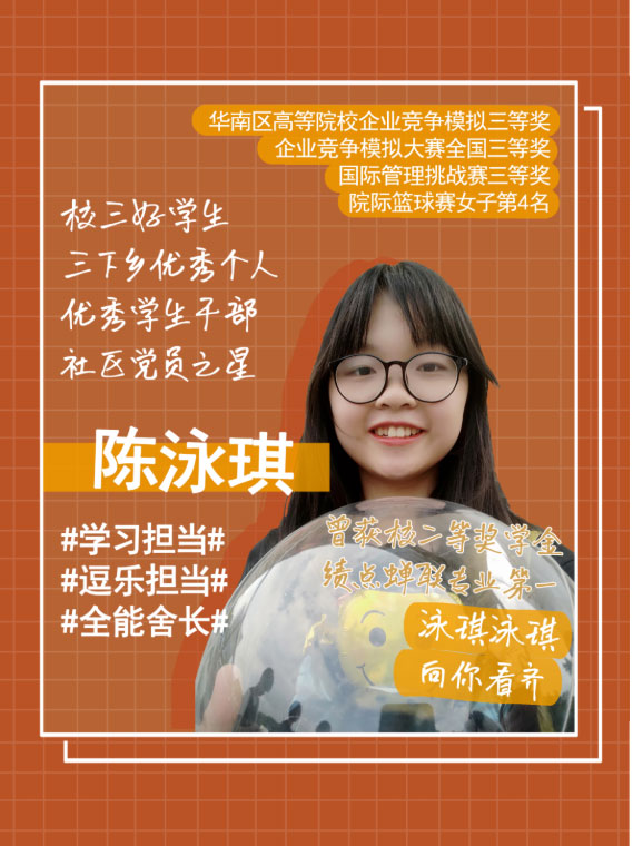 活泼可爱的陈泳琪,是舍友们公认的“学霸”。大一一年,她的绩点稳居经济学专业第一。